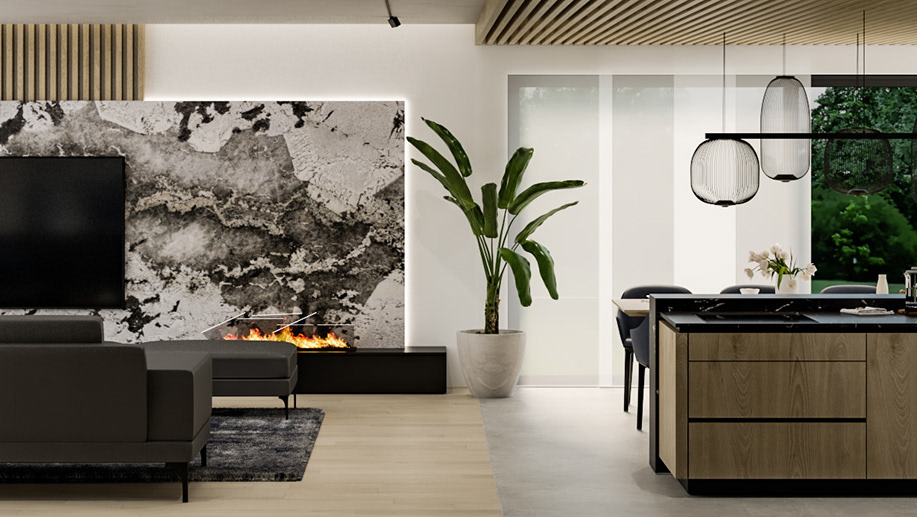 Dom W Bolechowicach, Salon z Aneksem Kuchennym
